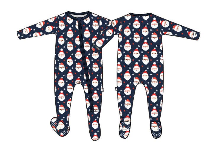Macaron + Me Footsie - Navy Vintage Santa