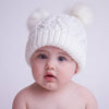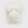 This sweet cable knit hat in a creamy white color is topped with 2 dyed-to-match furry pom poms. It is just the cutest hat ever in a festive red! We think this is adorable for the holidays. It makes a great photo prop too. We offer this in other colors as well.