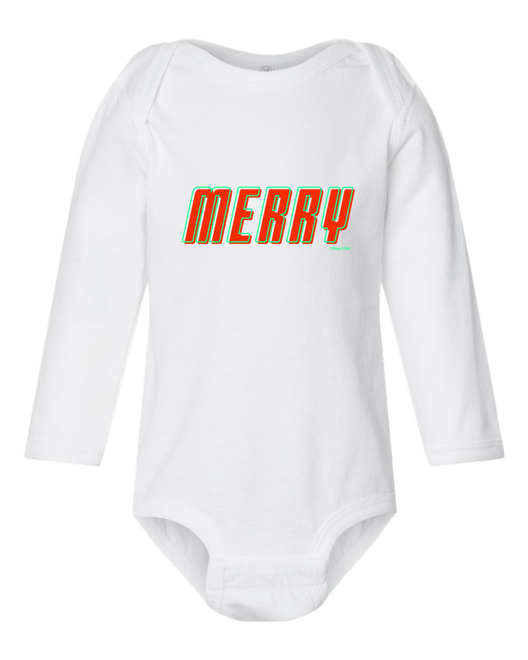 *PREORDER* Village Child Hand Pressed Holiday Bodysuit (White) - Merry