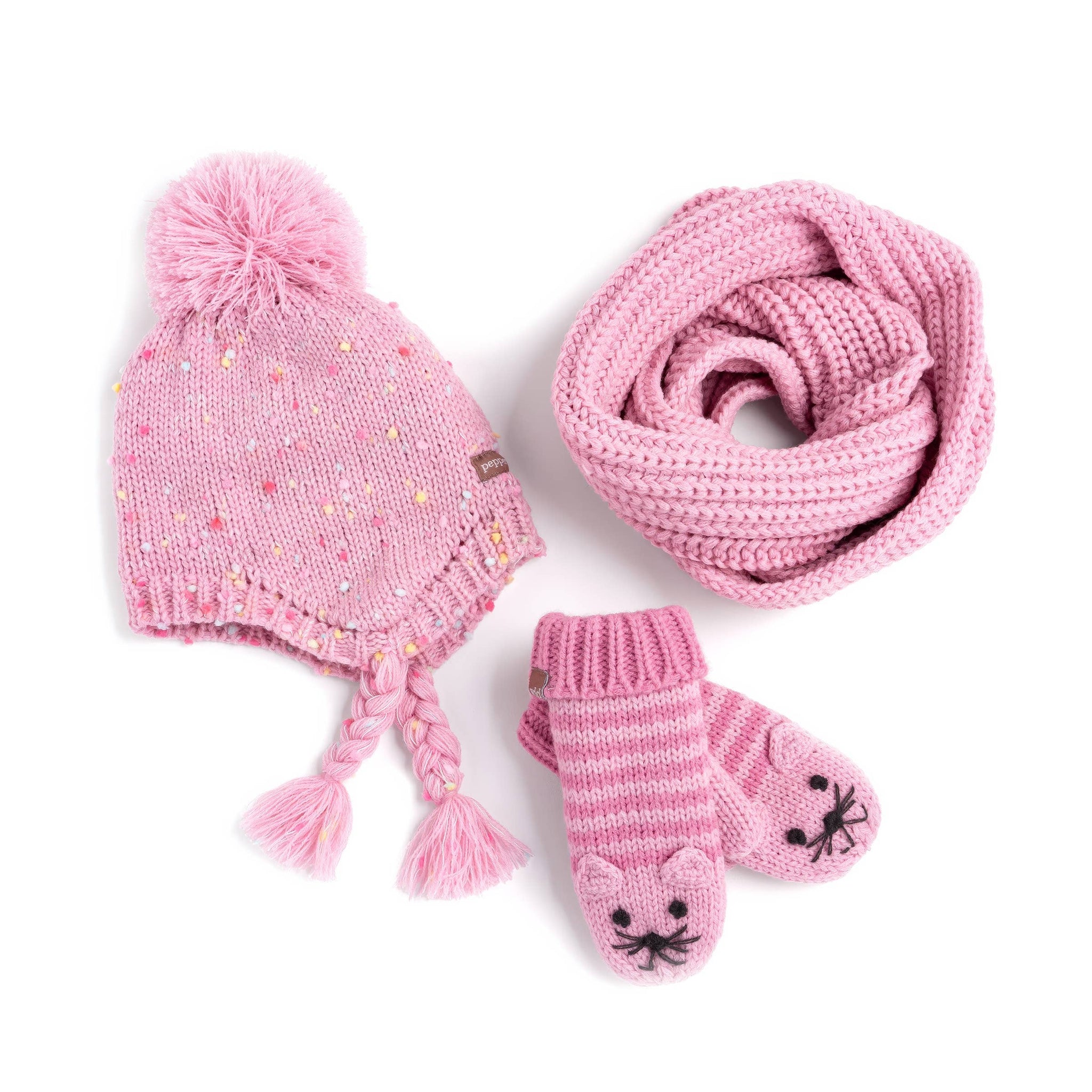 Our classic earflap hat received great customer feedback over past seasons. This year, we are bringing it back with knit inspired by a birthday confetti. With sweet, candy-like colors and all-over sprinkles, fun texture, dense knit, whimsical details of side braids and oversized pompom, warm lined interior, full ears coverage, this hat has it all. Available in muted, pastel pink and purple, with many coordinating options to choose from. 100 % Acrylic; Available sizes: S ( 1-2Y); M (2-4Y); L (4-6Y); XL ( 6-12Y)