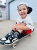 Shoe Size Sizes Infant, Extra Small, Small, Medium have logo grips on the bottom of the feet large have a stitched logo on the bottom of the feet.