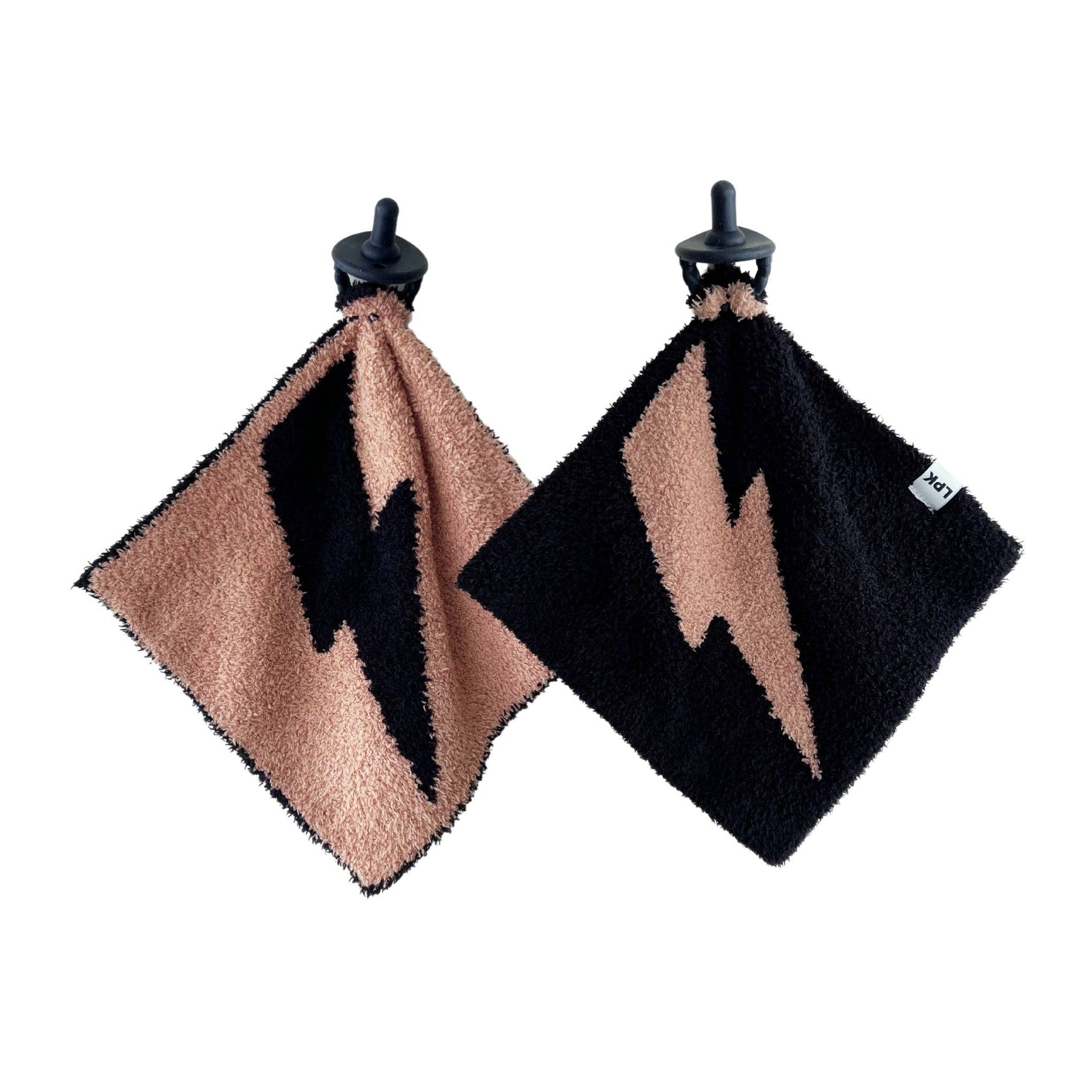 Snuggle, soothe, snug & carry... Introducing our new double-sided fuzzy pacifier loveys! They're dreamy soft, light weight and breathable! Crafted from ultra-soft feather yarn and brushed for extra softness on both sides.