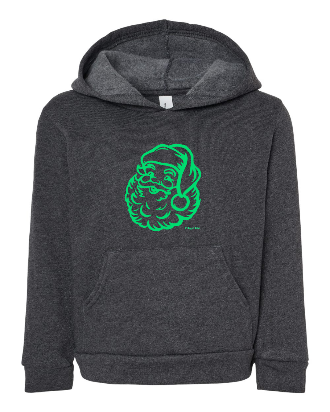 *PREORDER* Village Child Hand Pressed Fleece Sweatshirt (Dark Grey Heather) - Green Santa