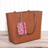 • Lobster-claw clasp clips securely to handbag, backpack, or belt loop.