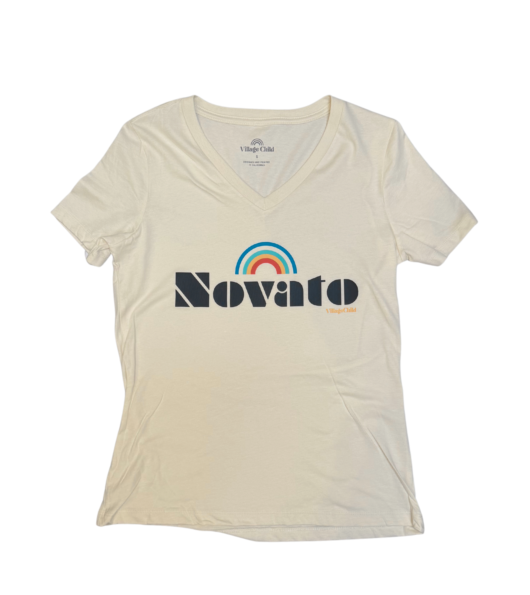 Village Child Hand-Pressed Women's Relaxed Jersey V-Neck Tee - Novato 🌈 (Natural)